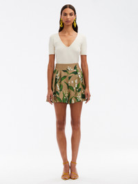 PRINTED WITH THIS SEASON'S LILY OF THE VALLEY MOTIF AND CUT FROM COTTON TWILL, THESE SHORTS MATERIALIZE AS A WARM-WEATHER ESSENTIAL. THE WIDE LEG AND SIDE SEAM POCKETS WILL INSTANTLY MAKE THESE YOUR FAVORITE SHORTS. HIGH WAISTED / BANDED WAIST / WIDE LEG SILHOUETTE / SIDE SEAM POCKETS / MID-THIGH LENGTH / CONCEALED SIDE ZIPPER / UNLINED / DRY CLEAN DIMENSIONS: MODEL IS 5'10.5" / 180 CM AND WEARING SIZE 2 MATERIAL: 97% COTTON, 3% ELASTANE MADE IN ITALY STYLE 24SN317LVT_WKH