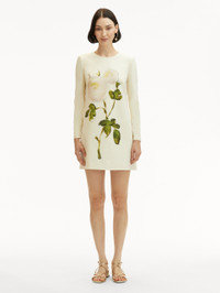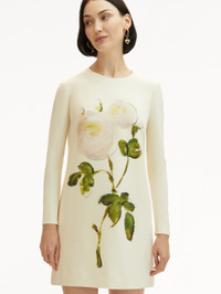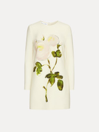 A painterly interpretation of the English rose, this exquisite print was hand-painted by Co-Creative Director Fernando Garcia. This mini dress boasts a classic shift silhouette and will elevate your every day. Details - Long Sleeves - Jewel Neckline - Shift Silhouette - Mid-Thigh Length - Concealed Back Zipper - 100% Silk Lining - Style Code: 25SN212PWD_WHI - Country of Origin: Italy Materials & Care - 94% Virgin Wool, 5% Elastane, 1% Polyamide