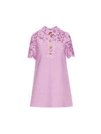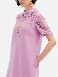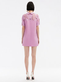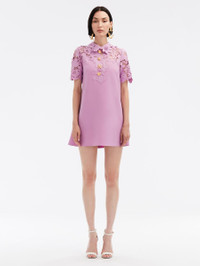 THIS MINI DRESS IS ELEVATED WITH MIXED BOTANICAL GUIPURE LACE AND FEATURES ORNATE FLORAL AND LEAF ACCENTS. CUT IN A CLASSIC SHIFT SILHOUETTE, THIS PIECE IS BOTH A STATEMENT AND A STAPLE. SHORT SLEEVES / SHIRT COLLAR / SHIFT SILHOUETTE / MID-THIGH LENGTH / SIDE SEAM POCKETS / CONCEALED BACK ZIPPER / GOLD-TONE HARDWARE / UNLINED / DRY CLEAN DIMENSIONS: MODEL IS 5'10.5" / 180 CM AND WEARING SIZE 2 MATERIAL: 94% VIRGIN WOOL, 5% ELASTANE, 1% POLYAMIDE; LACE: 70% POLYESTER, 30% COTTON MADE IN ITALY STYLE 24SN239DSW_LUP