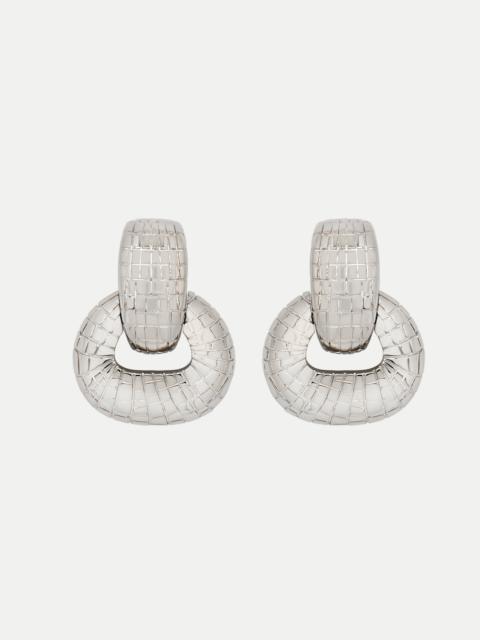 These silver-tone earrings are detailed with a mosaic-like pattern, creating a subtle yet captivating texture. Pair with the coordinating necklace. Details - Dimensions: 3 cm x 2 cm x 1.5 cm - Weight: 19 grams - Post Backs - For Pierced Ears - Style Code: S25J9032_SIL - Country of Origin: Italy Materials & Care - 99% Bronze, 1% Palladium