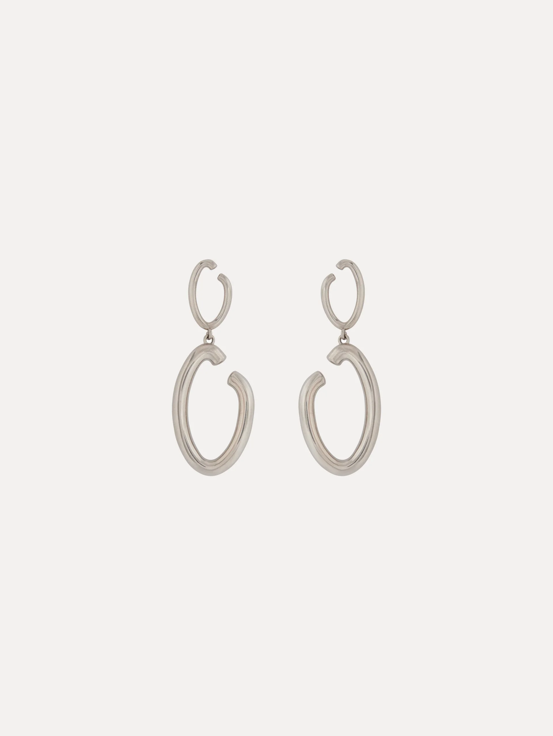 THESE DROP EARRINGS BRING THE OSCAR DE LA RENTA NAME TO THE FORE. SCULPTED INTO THE HOUSE'S SIGNATURE O EMBLEM, THESE CASCADING EARRINGS PAIR BEST WITH SWEPT-UP HAIR. POST BACKS / FOR PIERCED EARS DIMENSIONS: 21 X 2 INCHES 120 GRAMS MATERIAL: 100% BRASS MADE IN ITALY STYLE S24J923_SIL