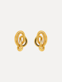 These gold earrings are delicately knotted into a fluid, sculptural design, subtly evoking the interlocking Oscar 'O' emblem in an abstract form. Pair with the coordinating bracelet or necklace. Details - Dimensions: 40 mm x 26 grams - Weight: 16 grams - Post Backs - For Pierced Ears - Style Code: P25J906_GOL - Country of Origin: Italy Materials & Care - 98% Copper, 1% Brass, 1% Gold
