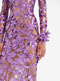 ECHOING TIMELESS ELEGANCE, THIS SEMI-SHEER BALLGOWN IS FINISHED WITH AN OFF-THE-SHOULDER NECKLINE IN COMPLEMENT TO STUNNING LONG SLEEVES. DEFINED BY EXQUISITE FLORAL SEQUIN EMBROIDERY, THIS STYLE WILL BE A FOREVER FAVORITE. LONG SLEEVES / OFF SHOULDER / FLOOR-SWEEPING HEMLINE WITH SHORT TRAIN / BACK ZIPPER / SEMI-SHEER / INTERNAL BUSTIER / 100% SILK LINING / DRY CLEAN DIMENSIONS: MODEL IS 5'10.5" / 180 CM AND WEARING SIZE 2 MATERIAL: 100% POLYAMIDE; LINING: 100% SILK MADE IN USA STYLE 24SE071TUL_LUP