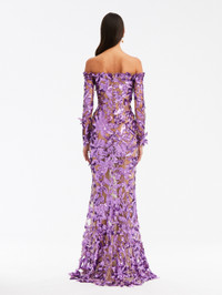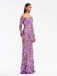 OFF SHOULDER SEQUIN EMBROIDERED GOWN