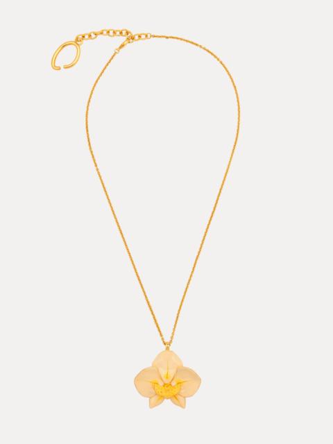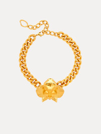 The orchid makes a statement on this chain-link necklace. Crafted from smooth, unadorned gold, the necklace captures the natural beauty of an orchid in its purest form. Details - Dimensions: 60 mm x 52 mm x 20 mm - Weight: 110 grams - 4" Extender Chain - Lobster Clasp - Style Code: R25J812_GOL Materials & Care - 100% Brass