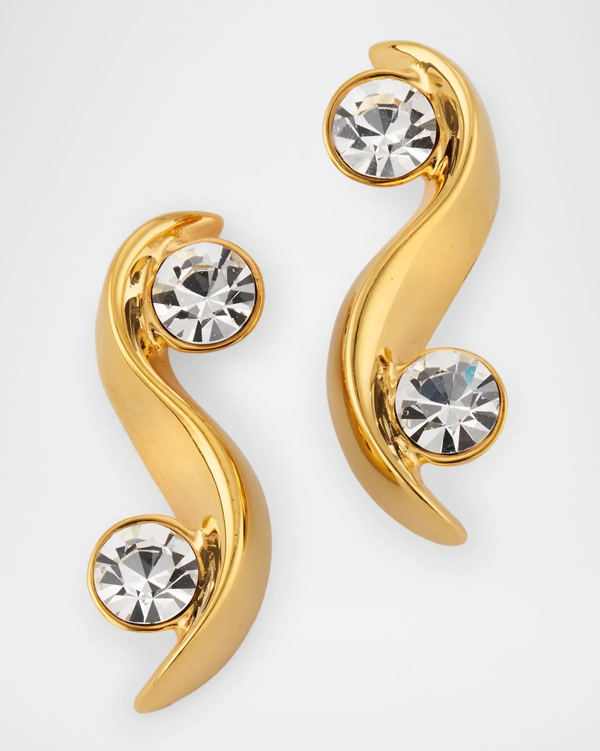 - Round glass crystals ride the wave of these Oscar de la Renta earrings. - Approx. 3cm long - 24-karat gold-plated brass - Glass rhinestones - For pierced ears - Made in Italy