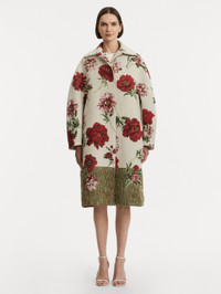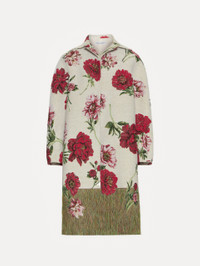 This oversized jacquard coat celebrates the exuberance of the tree peony in full bloom, with vibrant florals woven across its voluminous silhouette. At the hem, unraveled threads evoke the wild beauty of grass or untamed garden edges. Details - Long Sleeves - Spread Collar - Open Front - Side Seam Pockets - Lined - Style Code: 25FN8033PUJ_ECM - Country of Origin: Italy Materials & Care - - 57% Cotton, 23% Polyester, 15% Polyester Cotton, 5% Other Fibers - - Dry clean only.