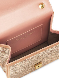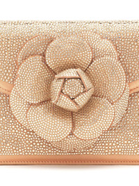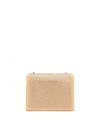 OUR SIGNATURE MINI TRO IS REIMAGINED FOR PRE-SPRING 2023 IN PEACH-COLORED SATIN COVERED ENTIRELY WITH PAVE CRYSTALS. SLIP THE GOLD-TONE CHAIN STRAP OVER YOUR SHOULDER WITH DAYTIME OR EVENING LOOKS. LONG STRAP: DROP LENGTH 57.1 CM 1 INTERIOR POCKET / PUSH LOCK / CHAIN SHOULDER STRAP / FLAP TOP / SPOT CLEAN DIMENSIONS: L 6.7" X H 5.1" D 3" L 17CM X H 13CM X D 7.5CM MATERIAL: 100% SATIN (68% VISCOSE / 32% SILK) MADE IN ITALY STYLE 23RH2003CRT_PEA