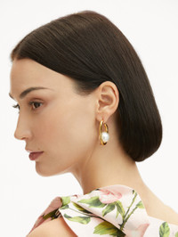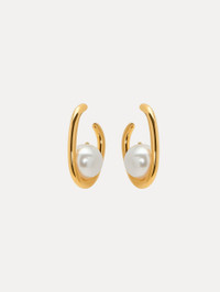 Made of the iconic Oscar de la Renta 'O' emblem with a statement pearl at the center of the gold-tone frame, these hoop earrings create a refined look that is both timeless and striking. Details - Post Backs - For Pierced Ears - Style Code: S25J911_PRL - Country of Origin: Italy Materials & Care - 98% Brass, 2% Plastic