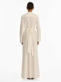Printed with blooming peonies, this cotton poplin caftan brings the flower's inherent beauty to the fore. The long-sleeve silhouette features a full-length skirt, waist sash, and banded collar—offering a fresh, feminine take on effortless day dressing. Details - Long Sleeves with Button Cuffs - Banded Collar - Concealed Button Front - Self-Tie Sash - Unlined - Style Code: 25FN922PEP_BUV - Country of Origin: Italy Materials & Care - - 97% Cotton, 3% Elastane - - Dry clean only.