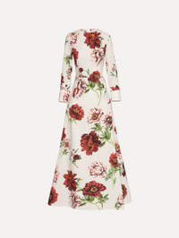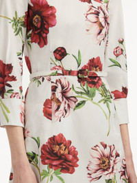 Printed with blooming peonies, this cotton poplin dress brings the flower's inherent beauty to the fore. The silhouette features three-quarter-length sleeves and a self-belt—offering a fresh, feminine take on effortless day dressing. Details - Three-Quarter-Length Sleeves with Button Cuffs - Jewel Neckline - Removable, Coordinating Buckle Belt with Belt Loops - Side Seam Pockets - Concealed Back Zipper - Unlined - Style Code: 25FN263PMN_IMU - Country of Origin: Italy Materials & Care - - 97% Cotton, 3% Elastane - - Dry clean only.