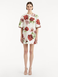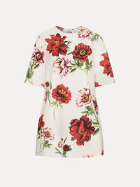 Printed with blooming peonies, this cotton poplin dress brings the flower's inherent beauty to the fore. The dress features oversized, short sleeves and a shift silhouette—offering a fresh, feminine take on effortless day dressing. Details - Short Sleeves - Jewel Neckline - Shift Silhouette - Side Seam Pockets - Concealed Back Zipper - Lined - Style Code: 25FN217PMN_IMU - Country of Origin: Italy Materials & Care - - 97% Cotton, 3% Elastane - - Dry clean only.