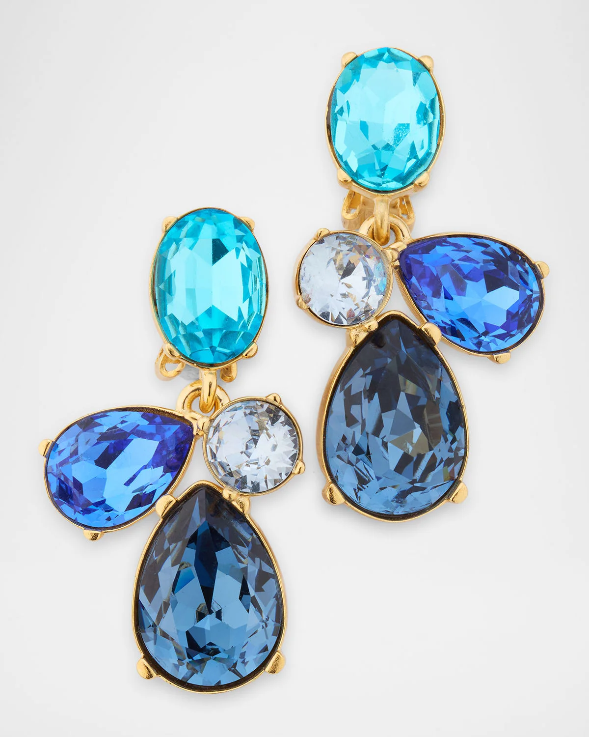 - These drop earrings from Oscar de la Renta are composed of faceted glass crystals. The rhinestones are multihued and mixed-cut. - Approx. 40mm length - 24-karat gold-plated brass - Clip-on backs - Made in Italy