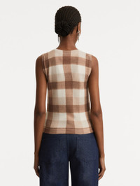 This classic ribbed-knit tank is printed with a distinctive plaid pattern. Cut in a form-fitting silhouette, this style features a crew neckline and banded trim. Wear alone for a sleeveless statement or pair with its coordinating cardigan for optimal versatility. Details - Sleeveless - Crew Neckline - Pullover Style - Ribbed Trim - Unlined - Style Code: 25FN126AID_BRU - Country of Origin: Italy Materials & Care - - 57% Cotton, 43% Viscose - - Dry clean only.
