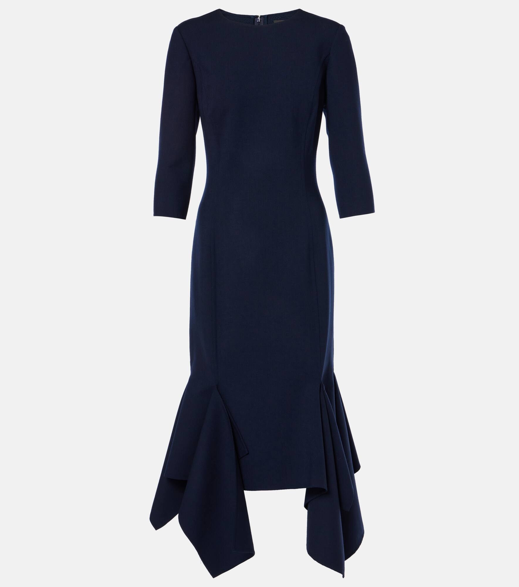 Pleated wool-blend midi dress
