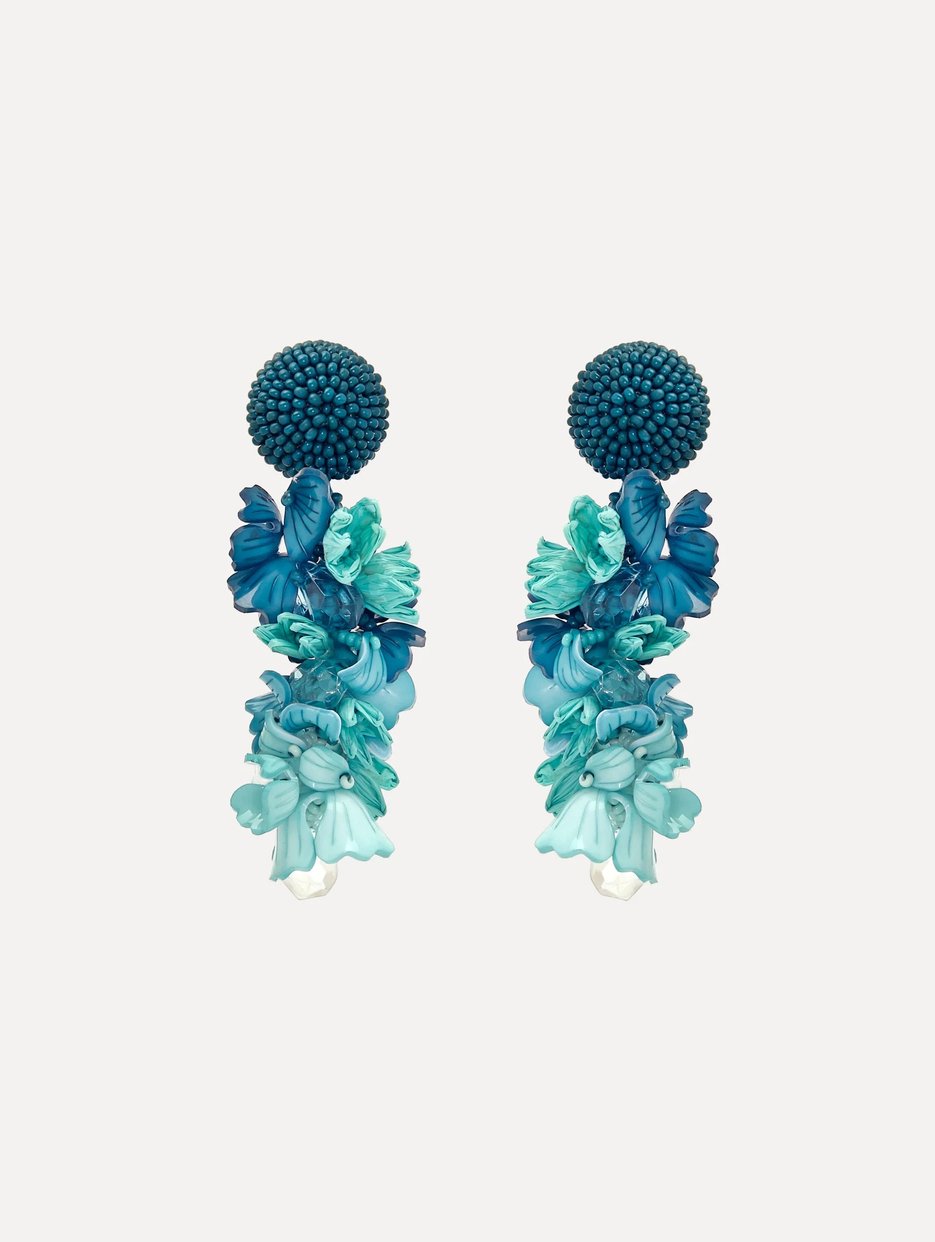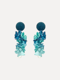 Vibrant blossoms come to life in a cascade of plexy petals, their dynamic form enhanced by delicate raffia accents. Dropping from a beaded fastening, the artful arrangement creates a striking interplay of color and texture. Details - Dimensions: 8 cm x 3.5 cm - Weight: 25 grams - Clip Backs with Comfort Pads - Style Code: P25J186_BMM - Country of Origin: India Materials & Care - 45% Acrylic, 20% Glass, 20% Viscose, 10% Polyester, 5% Brass