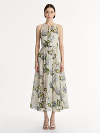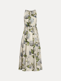 This porcelain-flower printed dress is shaped through delicate, meticulously placed pleats that create soft volume and movement. Subtle bows define the waist with an effortless femininity, echoing the romantic ease of the cotton poplin silhouette. Details - Sleeveless - Gathered Neckline - Concealed Back Zipper - Side Seam Pockets - Style Code: 26SN216PVO_DOA - Country of Origin: ITALY Materials & Care - 100% Cotton - Dry clean only.