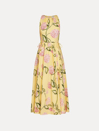 This porcelain-flower printed dress is shaped through delicate, meticulously placed pleats that create soft volume and movement. A pair of subtle self-tie bows define the waist with an effortless femininity, echoing the romantic ease of the cotton poplin silhouette. Details - Sleeveless - Gathered Neckline - Concealed Back Zipper - Side Seam Pockets - Style Code: 26SN2162POI_PBU - Country of Origin: ITALY Materials & Care - 97% Cotton, 3% Elastane - Dry clean only.
