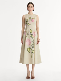 This cotton poplin dress offers clean lines softened by the artistry of the porcelain-flower print. The smooth silhouette becomes a canvas for sweeping painted blooms that wrap organically around the body, creating a look that feels both polished and quietly romantic. Details - Sleeveless - Jewel Neckline - Concealed Back Zipper - Style Code: 26SN206PLO_POA - Country of Origin: ITALY Materials & Care - 97% Cotton, 3% Elastane; Lining: 100% Cotton - Dry clean only.
