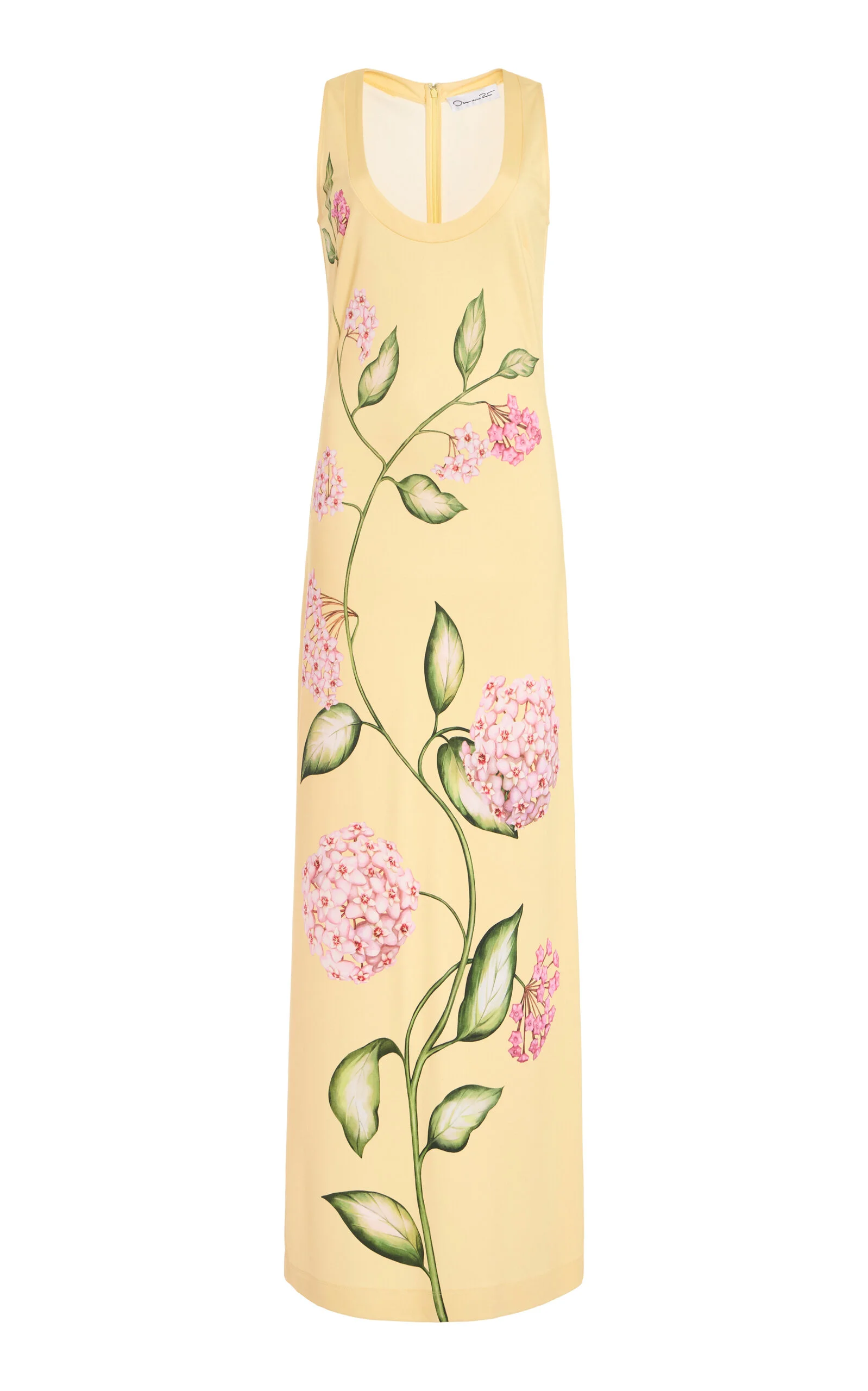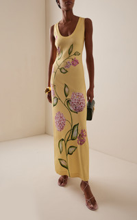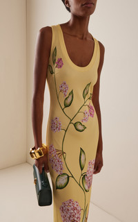 Porcelain Flowers Scoop-Neck Midi Dress yellow