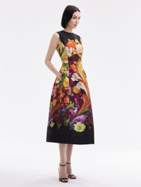 A TECHNICOLOR DREAMSCAPE, THIS COCKTAIL DRESS IS CRAFTED FROM SILK FAILLE AND PRINTED WITH THIS SEASON'S RAINBOW FLOWER MARBLE MOTIF. WITH A JEWEL NECK AND SIDE SEAM POCKETS, THIS PIECE IS BOTH A STATEMENT AND A STAPLE. SLEEVELESS / JEWEL NECKLINE / FIT-AND-SLARE SILHOUETTE / BELOW THE KNEE LENGTH / SIDE SEAM POCKETS / CONCEALED BACK ZIPPER / DRY CLEAN DIMENSIONS: MODEL IS 5'10.5" / 180 CM AND WEARING SIZE 2 MATERIAL: 100% POLYESTER MADE IN ITALY STYLE 24PN669RFF_BLM