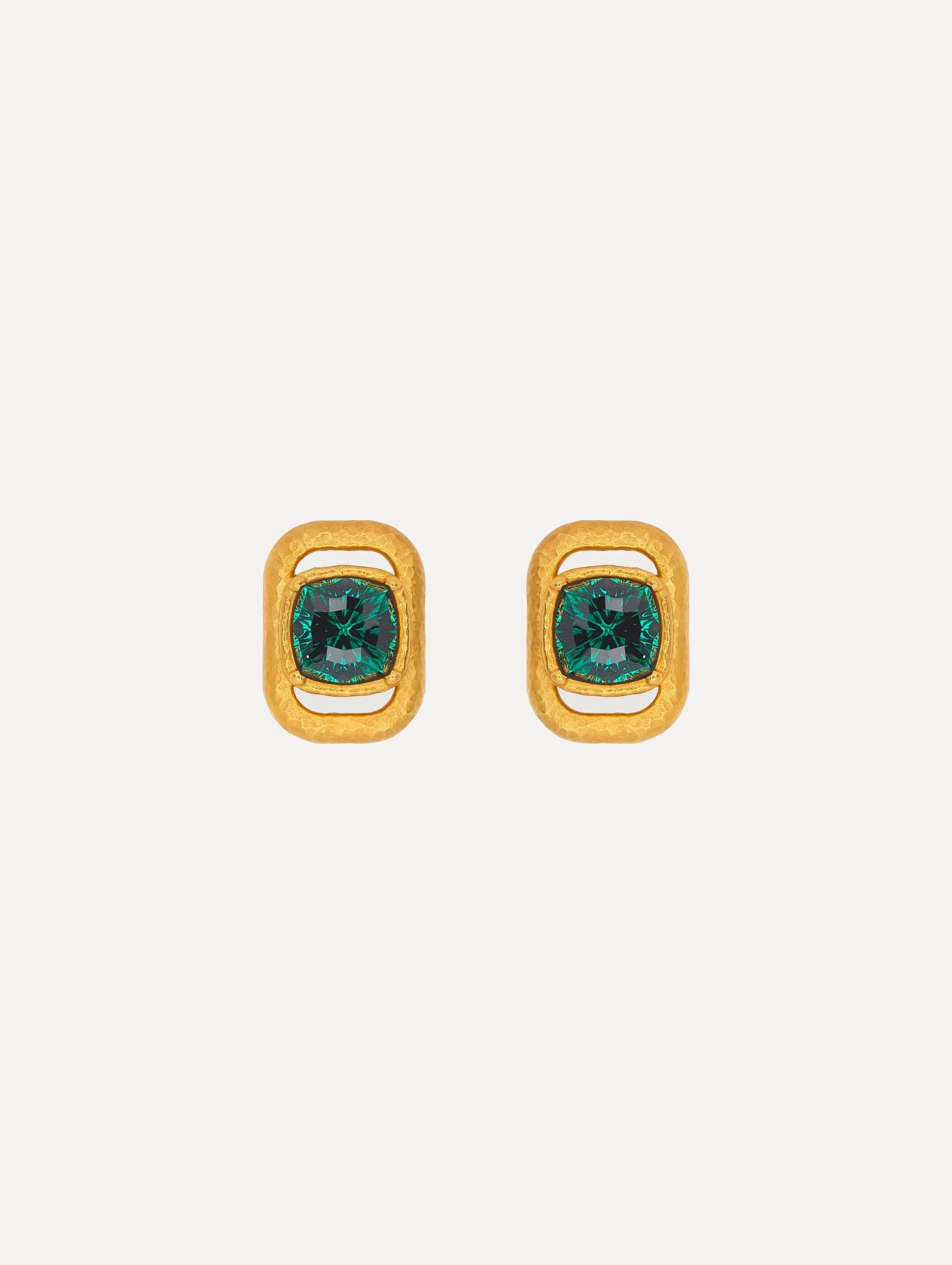 These stud earrings offer a refined take on bold simplicity. Cushion-cut crystals, framed by softly rounded rectangular forms, catch the light from every angle. Pair with the coordinating bracelet or necklace. Details - Dimensions: 2.5 cm - Weight: 20 grams - Post Backs / For Pierced Ears / European Glass Crystals - Style Code: F25J911_EMR - Country of Origin: Italy Materials & Care - - 91% Brass, 9% Crystal Glass - - Avoid exposing your jewelry to harsh chemicals. - - Lotions, cosmetics, hairspray and perfumes can cause chemical reactions that can cause the finish to deteriorate. - - Before handling, washing hands after applying makeup and hair products will help to preserve the finish. - - Do not wear in the pool, on the beach or in the shower. - - Wipe away dirt and body oils with a slightly damp microfiber jewelry cloth or cotton ball and allow to dry. - - Store separately in cloth pouches or small boxes to minimize scratching.