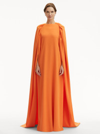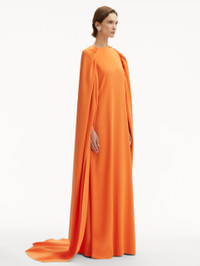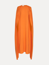 Crafted from heavy silk stretch georgette, this caftan exudes effortless elegance. This caftan features dramatic rushed shoulder detailing that flows into an elegant cape back and a relaxed silhouette adds a sense of fluidity and ease. Details - Cape Back - Square Neckline - Relaxed Silhouette - Floor-Sweeping Hemline with Short Train - Concealed Back Zipper - Unlined - Style Code: 25SN907HSG_CLM - Country of Origin: USA Materials & Care - 94% Silk, 6% Elastane