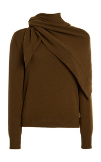 Scarf-Detailed Cashmere Sweater brown