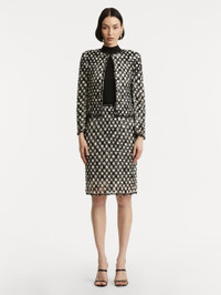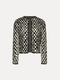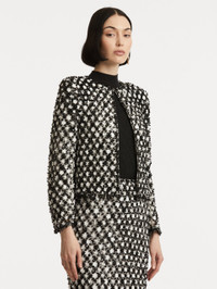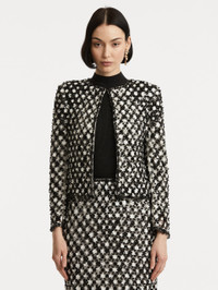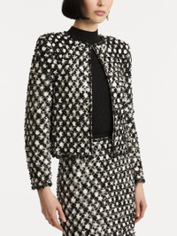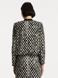 Tweed is reimagined through intricate sequin embroidery, where nested ivory and noir florets create a textural pattern across this tailored—bringing luminous dimension to this daywear separate. Details - Long Sleeves - Jewel Neckline - Open Front with Hook-and-Eye Closure - Lined - Style Code: 25FE512TUL_BLI - Country of Origin: Italy Materials & Care - - 100% Polyamide; Lining: 100% Silk - - Spot clean only. - - Do not dry clean, iron, steam, bleach, or wash.