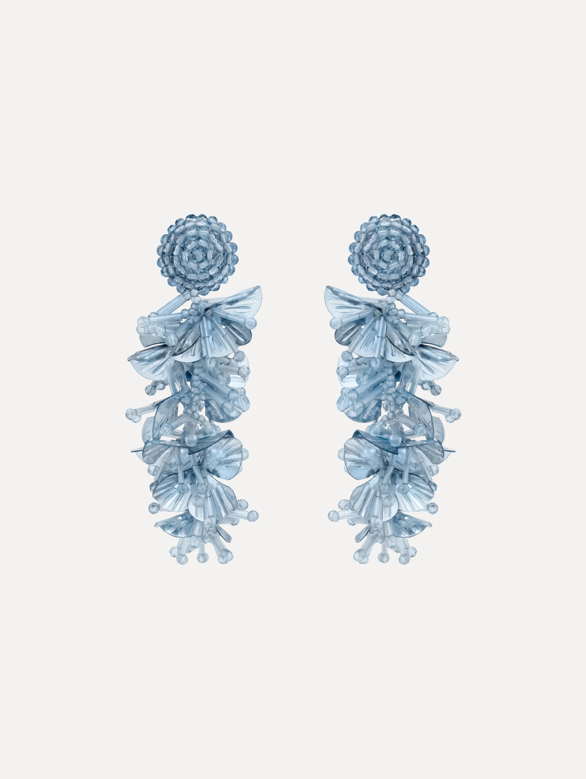 These earrings are crafted from sculpted sequin petals in vibrant blue, forming a woven dome at the top with layered florals cascading elegantly below. Details - Dimensions: 7.5 cm x 2 cm - Weight: 20 grams - Clip Back with Comfort Pads - Country of Origin: India - Style Code: R26J201_SKY Materials & Care - 65% Glass, 15% Plastic, 3% Nylon, 17% Brass - Avoid exposing your jewelry to harsh chemicals. - Lotions, cosmetics, hairspray and perfumes can cause chemical reactions that can cause the finish to deteriorate. - Before handling, washing hands after applying makeup and hair products will help to preserve the finish. - Do not wear in the pool, on the beach or in the shower. - Wipe away dirt and body oils with a slightly damp microfiber jewelry cloth or cotton ball and allow to dry. - Store separately in cloth pouches or small boxes to minimize scratching.