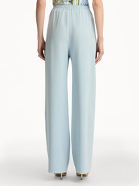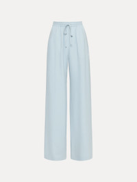 Effortless by design, these wide-leg pants are crafted from silk georgette that moves with weightless fluidity. The elastic waistband is finished with a delicate drawstring tie, blending comfort with quiet refinement. Details - High Waisted - Elastic Waist with Drawstring - Side Seam Pockets - Wide Leg Silhouette - 100% Silk Lining - Country of Origin: Italy - Style Code: 26RN308HSG_SKY Materials & Care - 94% Silk, 6% Elastane; Lining: 100% Silk - Dry clean only.