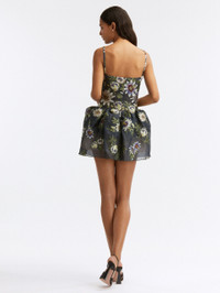DECORATED WITH EXQUISITE PASSIONFLOWER EMBROIDERY, THIS SLEEVELESS MINI DRESS IS ELEVATED WITH DELICATE STRAPS AND A HIGH NECKLINE. CUT IN DECADENT FIL COUPE SILK, THIS FIT-AND-FLARE COCKTAIL DRESS DONS A LIGHTWEIGHT, TEXTURED FINISH. SIDE SEAM POCKETS / BOATNECK / SPAGHETTI STRAPS / OPEN SQUARE BACK / CONCEALED BACK ZIPPER / DRY CLEAN DIMENSIONS: MODEL IS 5'11" / 180 CM AND WEARING SIZE 2 MATERIAL: 52% SILK 41% POLYESTER 7% POLYAMID MADE IN ITALY STYLE 23RN216DFO_NVM