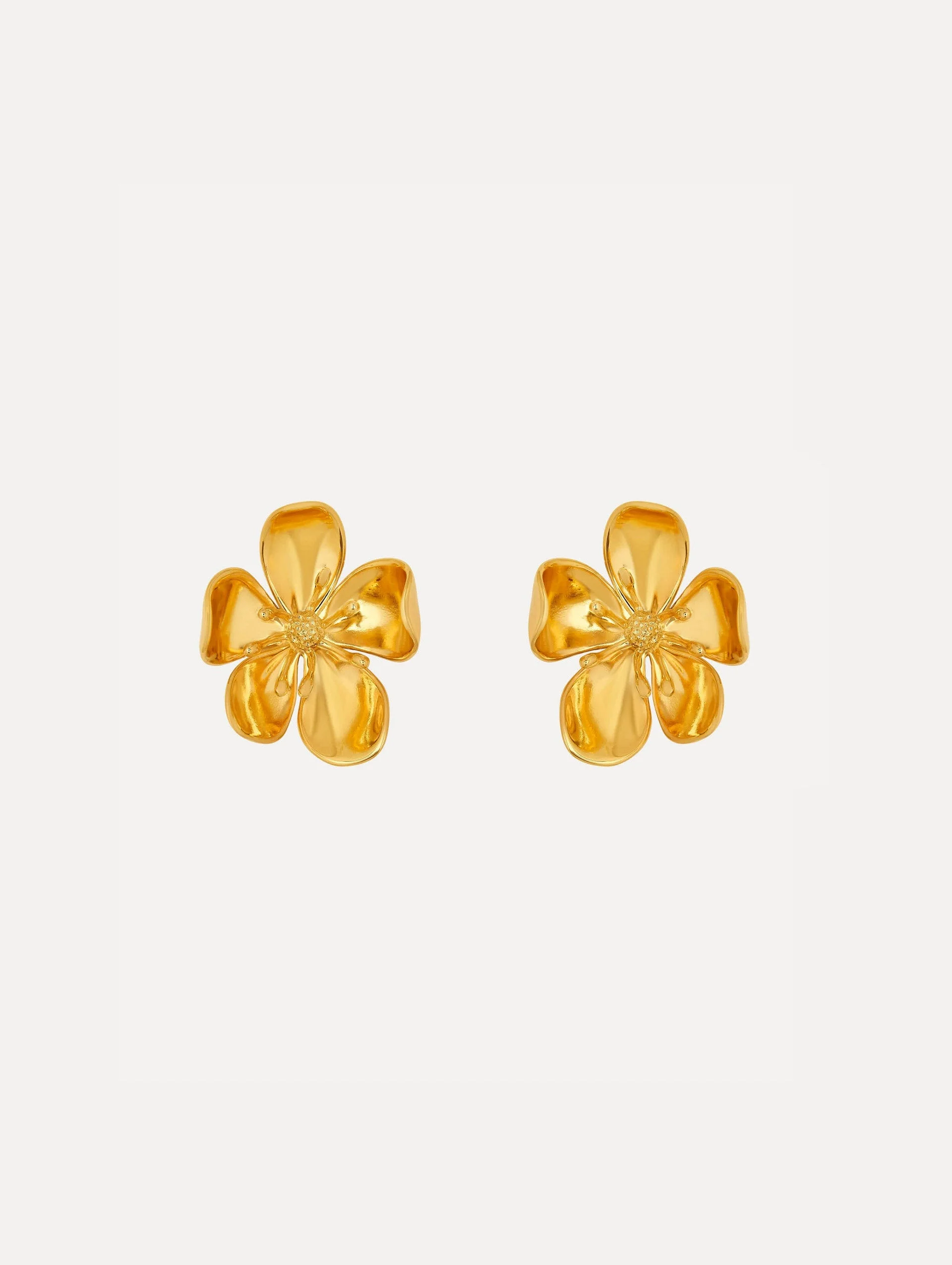 These gilt cherry blossom earrings capture the elegance of nature in its purest form. Sculpted with intricate detailing, the delicate blossoms exude a refined grace. Details - Dimensions: 3.4 cm - Weight: 24 grams - Post Backs - For Pierced Ears - Style Code: P25J931_GOL - Country of Origin: Italy Materials & Care - 99% Brass, 1% Gold