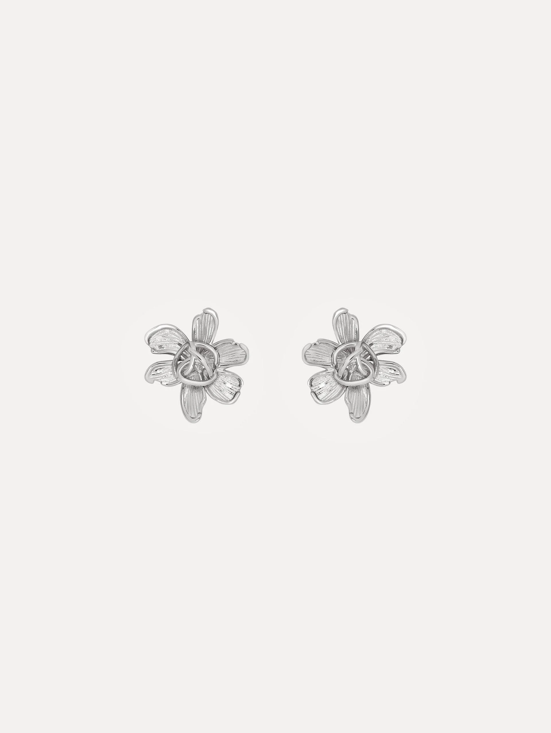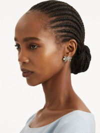 These textured floral earrings hold a subtle surprise, with sculpted petals that echo the curves of the Oscar 'O' and a braided emblem at the center drawn from this season’s signature motif. Details - Dimensions: 23 mm x 25 mm - Weight: 8 grams - Post Backs / For Pierced Ears - Style Code: F25J936_SIL - Country of Origin: Italy Materials & Care - - 100% Brass - - Avoid exposing your jewelry to harsh chemicals. - - Lotions, cosmetics, hairspray and perfumes can cause chemical reactions that can cause the finish to deteriorate. - - Before handling, washing hands after applying makeup and hair products will help to preserve the finish. - - Do not wear in the pool, on the beach or in the shower. - - Wipe away dirt and body oils with a slightly damp microfiber jewelry cloth or cotton ball and allow to dry. - - Store separately in cloth pouches or small boxes to minimize scratching.
