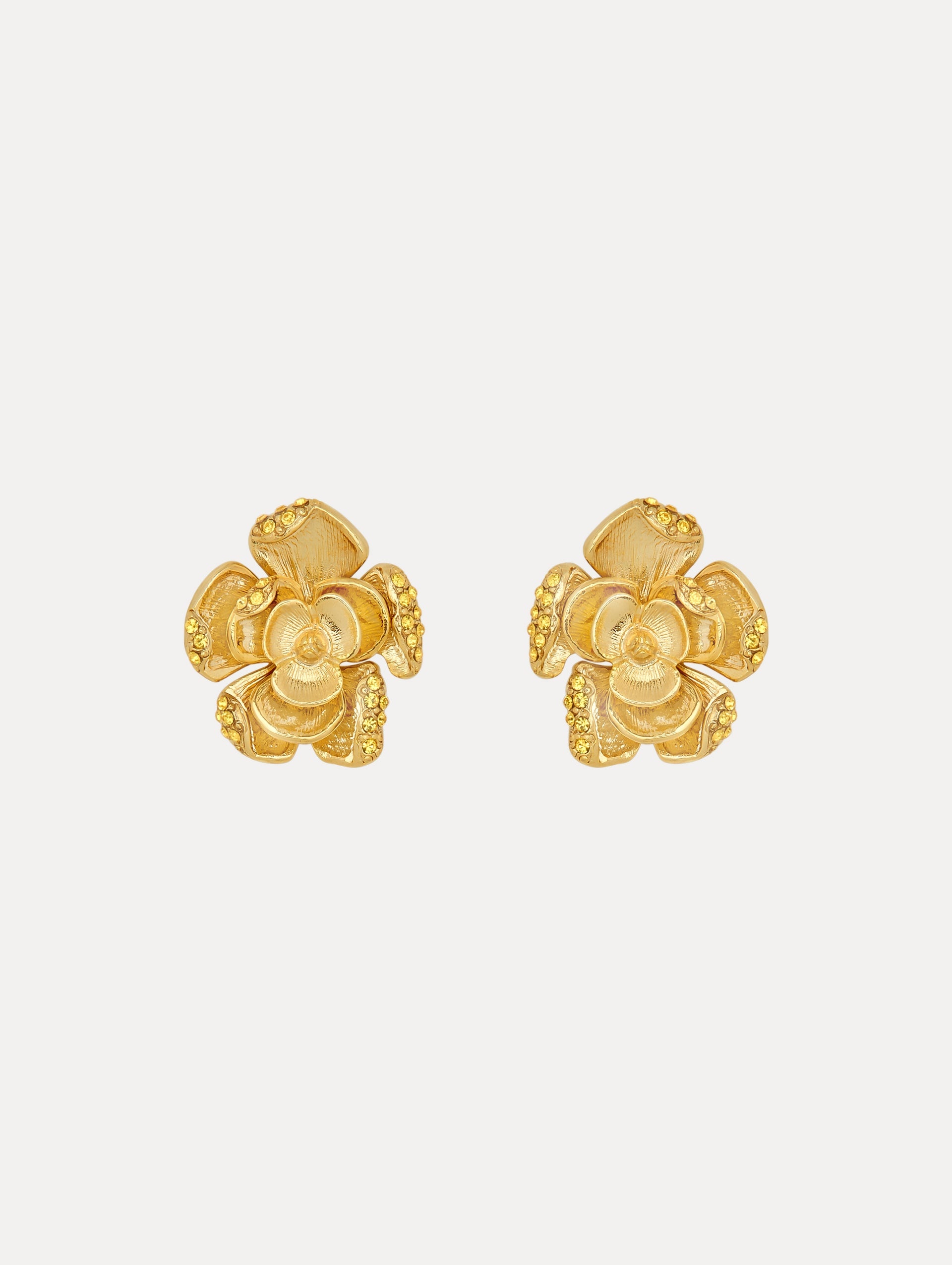 These rose earrings beautifully capture the essence of the season's hero flora, featuring intricately detailed petals enhanced with shimmering pave crystals. Pair with the coordinating brooch. Details - Dimensions: 28 mm x 24 mm - Weight: 30 grams - Post Backs - For Pierced Ears - European Glass Crystals - Style Code: S25J118_LTT - Country of Origin: Italy Materials & Care - 95% Brass, 5% Crystal Strass