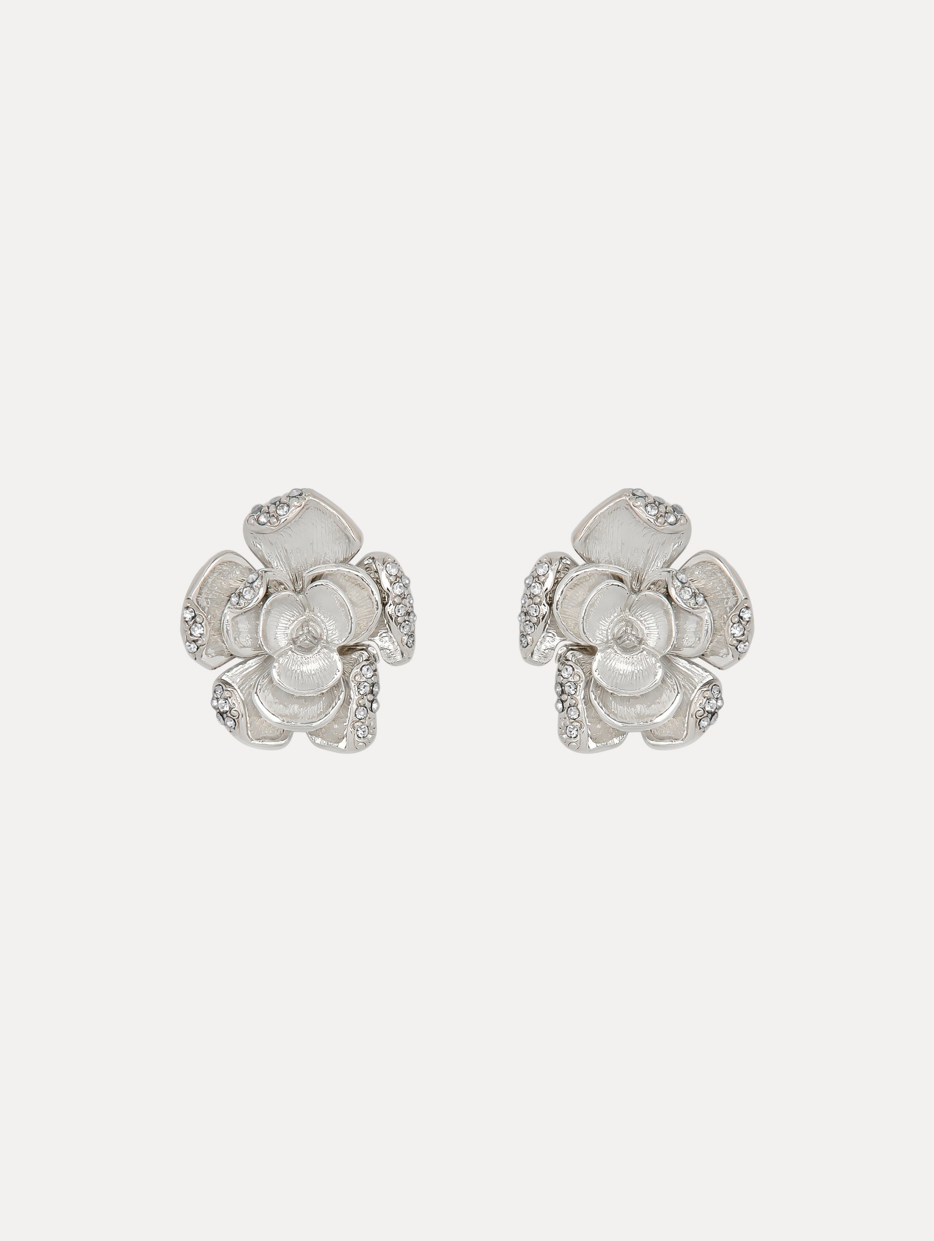 These rose earrings beautifully capture the essence of the season's hero flora, featuring intricately detailed petals enhanced with shimmering pave crystals. Pair with the coordinating brooch. Details - Dimensions: 28 mm x 24 mm - Weight: 30 grams - Post Backs - For Pierced Ears - European Glass Crystals - Style Code: S25J118_CRT - Country of Origin: Italy Materials & Care - 95% Brass, 5% Crystal Strass