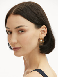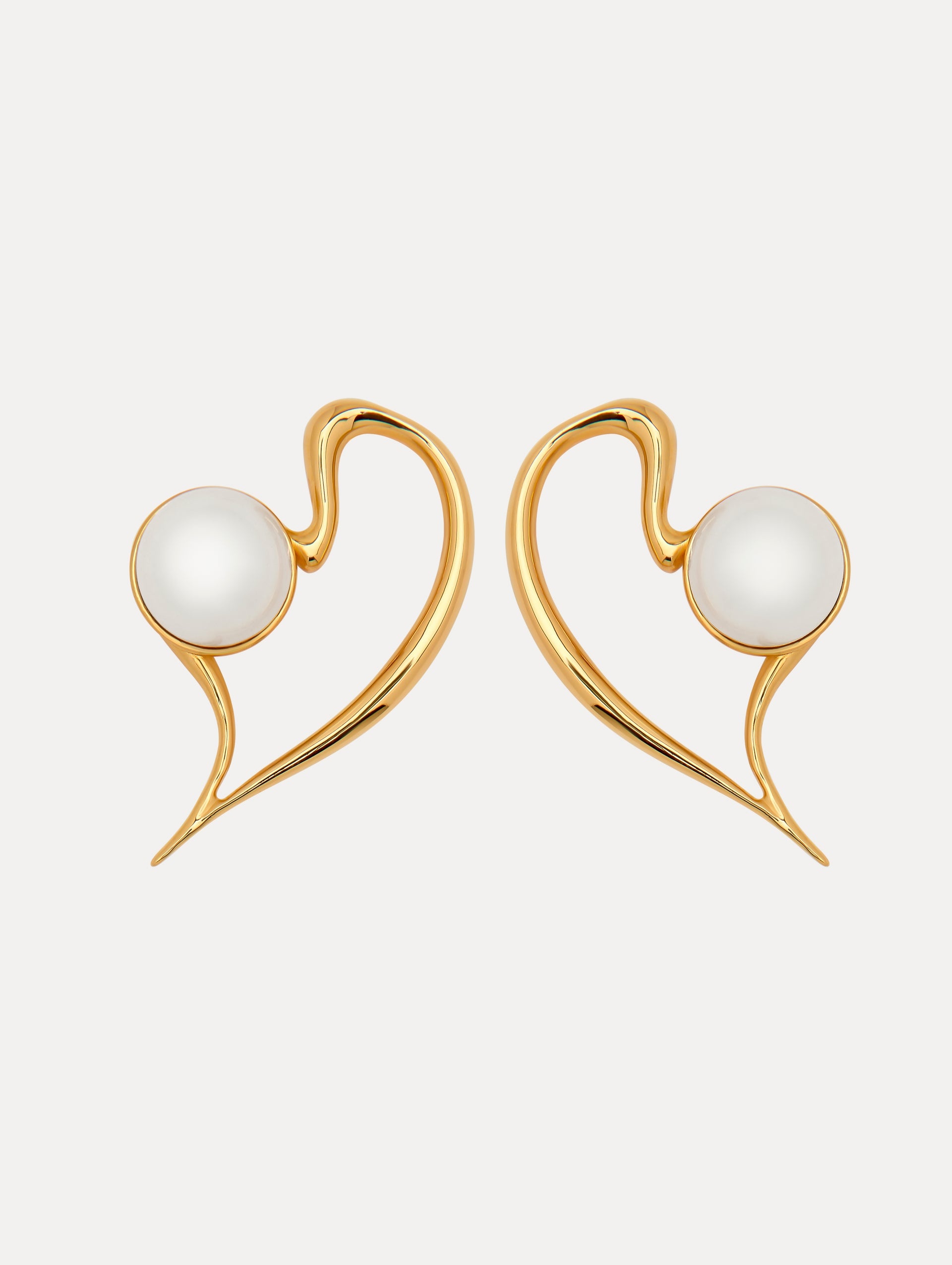 Delicately crafted from fluid lines that form the intricate shape of an abstract heart, this design creates a sense of graceful movement. A single pearl details rests at the center, adding a touch of refinement. Details - Dimensions: 60 mm x 27 mm - Weight: 25 grams - Post Backs - For Pierced Ears - Style Code: S25J921_PRL - Country of Origin: Italy Materials & Care - 100% Brass