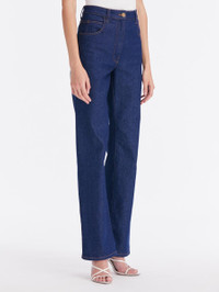 DENIM MAKES A STRIKING RETURN FOR PRE-SPRING 2024. CUT OF A MEDIUM WASH DENIM, THESE PANTS FEATURE A 2-POCKET CONSTRUCTION AND A STRAIGHT-LEG SILHOUETTE. ZIP FLY WITH A BUTTON CLOSURE / 2 POCKET STYLE / STRAIGHT LEG SILHOUETTE / UNLINED / DRY CLEAN DIMENSIONS: MODEL IS 5'10.5" / 180 CM AND WEARING SIZE 2 MATERIAL: 99% COTTON, 1% ELASTANE MADE IN ITALY STYLE 24RN321DNM_BLU