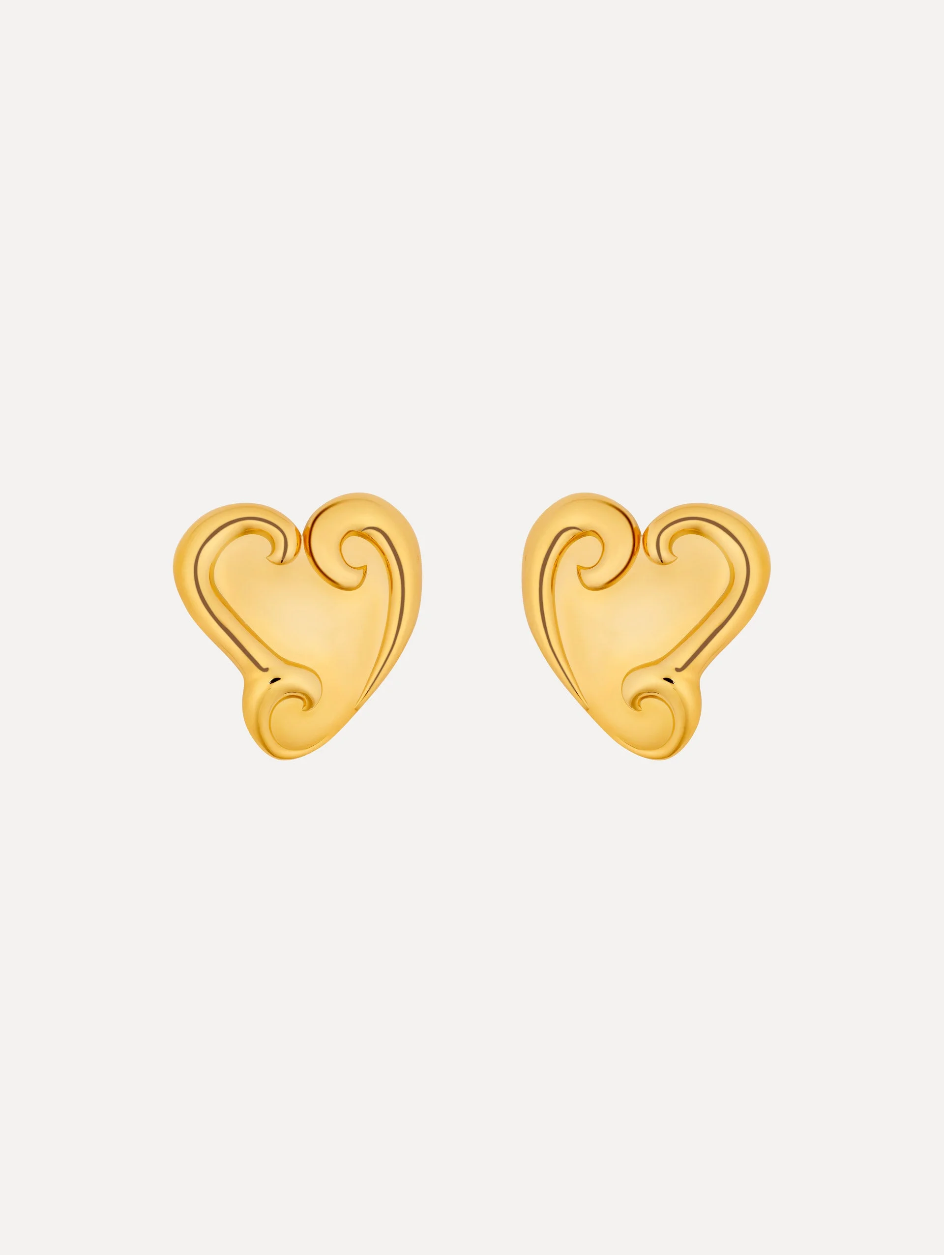 These polished earrings reimagine the heart motif with an abstract, swirling form. Bold yet fluid, they lend a modern touch of romance to any look. Pair with the coordinating bracelet. Details - Dimensions: 30 mm x 30 mm - Weight: 7.5 grams - Clip Back with Comfort Pads - Country of Origin: Italy - Style Code: R26J928_GOL Materials & Care - 98% Brass, 1% Bronze, 1% Gold - Avoid exposing your jewelry to harsh chemicals. - Lotions, cosmetics, hairspray and perfumes can cause chemical reactions that can cause the finish to deteriorate. - Before handling, washing hands after applying makeup and hair products will help to preserve the finish. - Do not wear in the pool, on the beach or in the shower. - Wipe away dirt and body oils with a slightly damp microfiber jewelry cloth or cotton ball and allow to dry. - Store separately in cloth pouches or small boxes to minimize scratching.