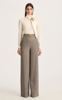 PRODUCT DETAILS - Slim fit, mid rise, belted waist, wide leg - Zipper fastening - Composition: 54% Virgin Wool, 46% Cashmere; Lining: 100% Silk - Color: Walnut/Natural - Dry clean - Made In: Italy - Resort '26