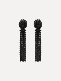 These tassel earrings cascade in sculptural strands, each bead carefully strung to catch the light. Finished with a beaded-strung post for a touch of texture, they bring playful charm to any look. Details - Dimensions: 11 cm x 2.3 cm - Weight: 34 grams - Clip Back with Comfort Pads - Country of Origin: India - Style Code: R26J193_JET Materials & Care - 80% Glass, 17% Brass, 3% Nylon Thread - Avoid exposing your jewelry to harsh chemicals. - Lotions, cosmetics, hairspray and perfumes can cause chemical reactions that can cause the finish to deteriorate. - Before handling, washing hands after applying makeup and hair products will help to preserve the finish. - Do not wear in the pool, on the beach or in the shower. - Wipe away dirt and body oils with a slightly damp microfiber jewelry cloth or cotton ball and allow to dry. - Store separately in cloth pouches or small boxes to minimize scratching.
