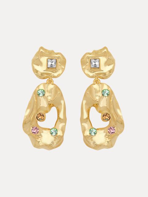 Set with glass crystals of varying cuts and sizes, these double drop earrings feature a unique textured finish which adds depth and sophistication, contrasting the glimmer of the glass crystals. Details - Dimensions: 3 x 1.25" - Weight: 26 grams - Clip Backs with Comfort Pads - European Crystal Glass - Style Code: R25J118_MUL Materials & Care - 90% Pewter, 5% Crystal Glass, 4% Brass, 1% Gold