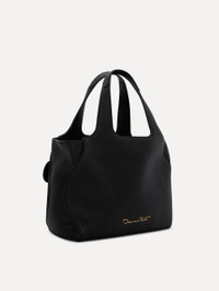 Crafted from full-grain pebbled leather with a refined laser-cut technique, this mini version of a classic style elegantly embodies Oscar de la Renta’s floral legacy. Designed for versatility, the bag can be worn with two distinct looks: open for a roomy interior or clasped for added security. Detailed with Oscar de la Renta's signature O at the clasp, this tote subtly showcases the brand's heritage, with the curved seams of the bag echoing the graceful curvature of the logo. Details - Dimensions: 22.5 cm x 8.5 cm x 18 cm - Weight: 380 grams - Top Handle Drop Length 12.5 cm - Top Handles - Logo D-Ring Closure - Unlined - Spot Clean - Made in Italy - Style Code: 00NH167ORC_BLK Materials & Care - 100% Calf Leather
