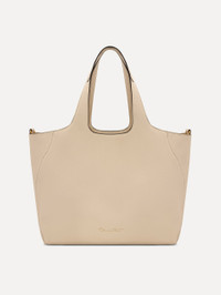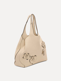 Crafted from full-grain pebbled leather with a refined laser-cut technique, The Topaz tote elegantly embodies Oscar de la Renta’s floral legacy. Designed for versatility, the bag can be worn with two distinct looks: open for a roomy interior or clasped for added security. Detailed with Oscar de la Renta's signature O at the clasp, this tote subtly showcases the brand's heritage, with the curved seams of the bag echoing the graceful curvature of the logo. Details - Dimensions: 40 cm x 34 cm x 16 cm - Weight: 800 grams - Top Handle Drop Length 25 cm - Top Handles - Logo D-Ring Closure - Unlined - Spot Clean - Made in Italy - Style Code: 00NH160ORC_IVR Materials & Care - 100% Calf Leather
