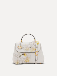 Crafted from full-grain pebbled leather and adorned with laser-cut cherry blossoms, The Mini Poppy handbag elegantly embodies Oscar de la Renta’s floral legacy. This petite take on a classic style balances sophistication with practicality, featuring a spacious compartment, top handle, and removable shoulder strap for versatile wear. Finished with a discreet magnetic closure and Oscar de la Renta’s signature 'O' on the ornamental bag tag, every detail exudes elegance. Details - Dimensions: 24 cm x 16 cm x 8.5 cm - Weight: 480 grams - Short Strap: Top Handle Drop Length 7 cm - Long Strap: Strap Length 102-120 cm - Drop Length 49-58 cm - 2 Interior Pockets - Magnetic Closure - Top Handle - Adjustable, Detachable Shoulder Strap - Detachable Logo Tag - Light Taupe Microfiber Interior - Fits Up to an iPhone 16 Pro - Style Code: 25PH159EMB_IVR - Country of Origin: Italy Materials & Care - - 100% Bull Leather - - Remove dust regularly with a dry or slightly damp cloth and allow to dry completely. - - Avoid prolonged exposure to direct sunlight to prevent fabric discoloration. - - Keep away from heat sources to prevent the leather from drying out or becoming rigid. - - Store in its original packaging, in a cool, dry place, away from light, heat, and humidity. - - For oil stains, gently wash with water and mild soap. If needed, test a degreasing agent on a hidden area before applying. - - For other stains, wipe with lukewarm water, treating the entire leather surface evenly. If the stain persists, try using soapy water.