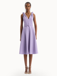 This double-faced stretch wool dress pairs clean lines with playful detail. Knotted straps frame the neckline with soft dimension, while a self-belt draws in the waist before releasing into a fluid A-line skirt. Details - Sleeveless - V-Neckline - Removable, Coordinating Buckle Belt - Concealed Back Zipper - Unlined - Country of Origin: Italy - Style Code: 26RN2172DSW_PSY Materials & Care - 94% Virgin Wool, 5% Elastane, 1% Polyamide - Dry clean only.