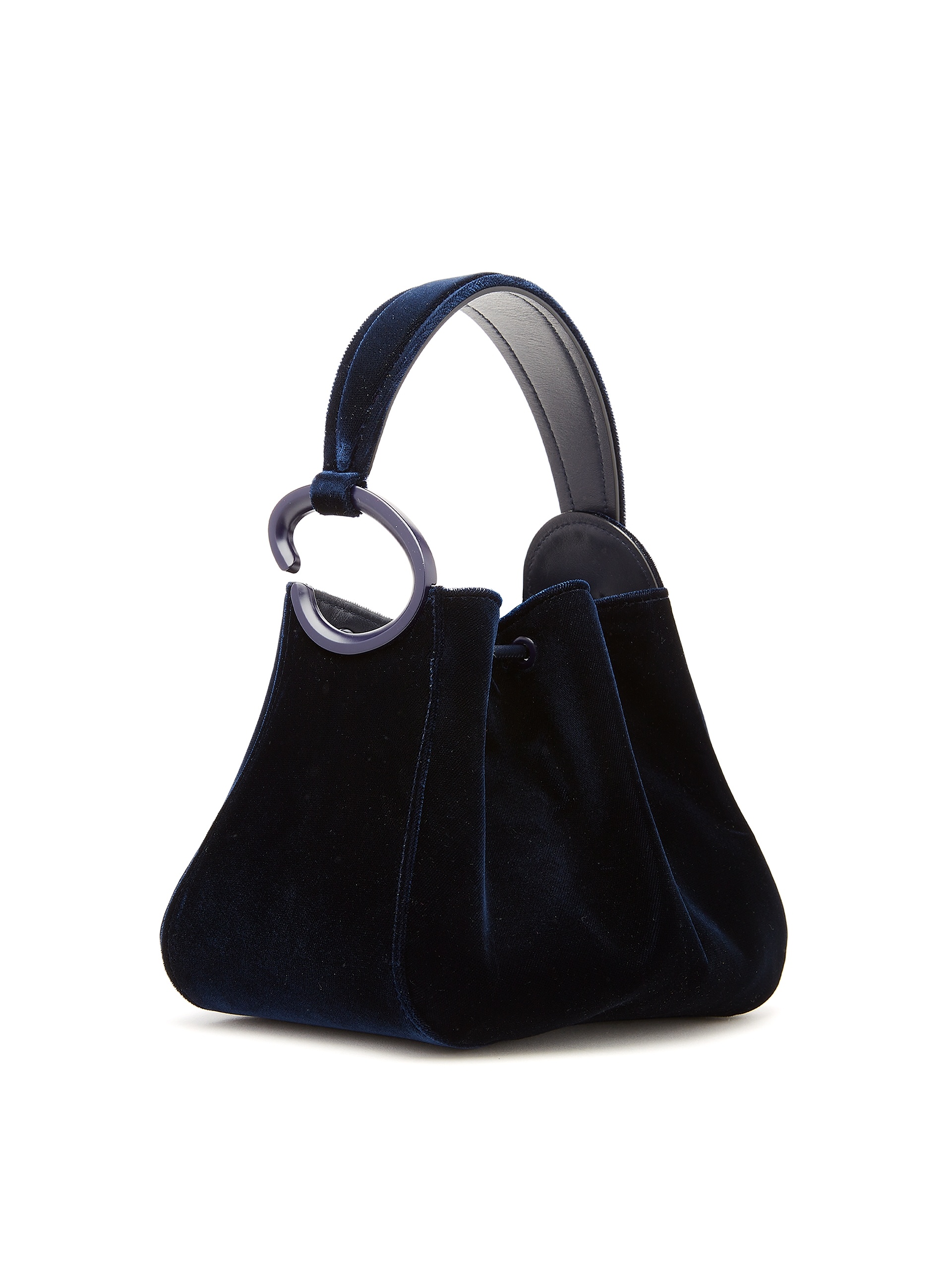 A FRESH TAKE ON A SIGNATURE STYLE, THIS O HANDLE BAG IS CRAFTED FROM LUSTROUS NAVY VELVET AND IN A TOP HANDLE SILHOUETTE WITH A DRAWSTRING FASTENING. SLIP THE DETACHABLE SHOULDER STRAP OVER YOUR SHOULDER OR CONVERT TO HANDHELD WITH DAYTIME OR EVENING LOOKS. TOP HANDLE / DRAWSTRING CLOSURE / DETACHABLE, ADJUSTABLE SHOULDER STRAP / NAVY LAMB LEATHER INTERIOR / FITS UP TO AN IPHONE 14 PRO MAX / SPOT CLEAN DIMENSIONS: 23 CM X 18 CM X 12 CM SHORT STRAP: TOP HANDLE DROP LENGTH 10 CM LONG STRAP: STRAP LENGTH 130 CM / DROP LENGTH 58 CM MATERIAL: 95% VELVET, 5% CALF LEATHER MADE IN ITALY STYLE 24RH308VEL_NAV