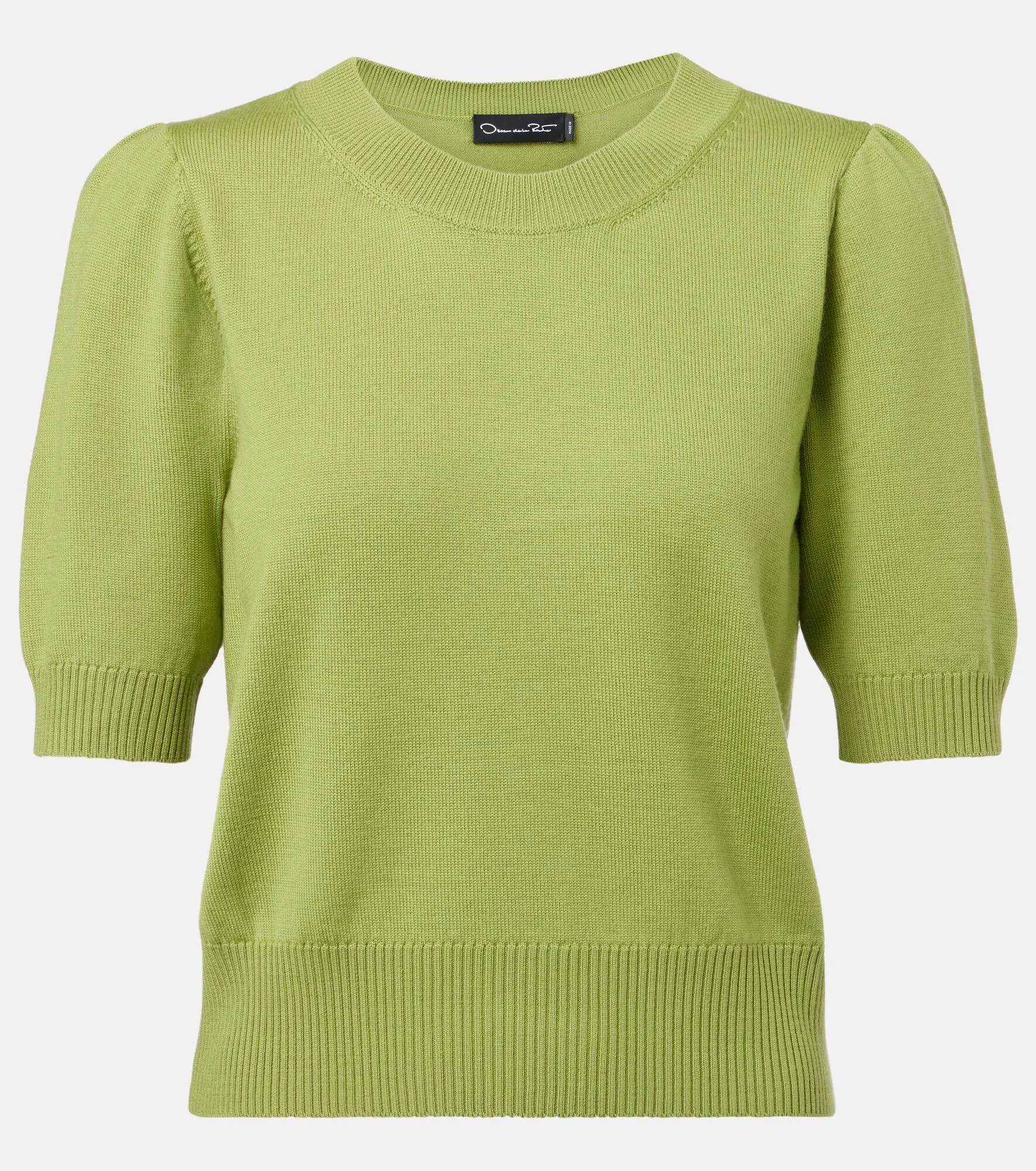 This short-sleeved sweater from Oscar de la Renta is knit from pure virgin wool. Made in Italy, the design has a crewneck silhouette and ribbed trims around the sleeves and the hem. Product Details - Material: 100% virgin wool - Care instructions: dry clean - Made in Italy - Designer color name: Fern - Item color: green - Collar: crewneck - Cuff: ribbed - Hem: ribbed - Item number: P01047988 Size & Fit - True to size - Cinched waist - Slightly stretchy fabric - Slightly cropped - The model seen in the picture is 178cm-5'10" and wearing a size XS