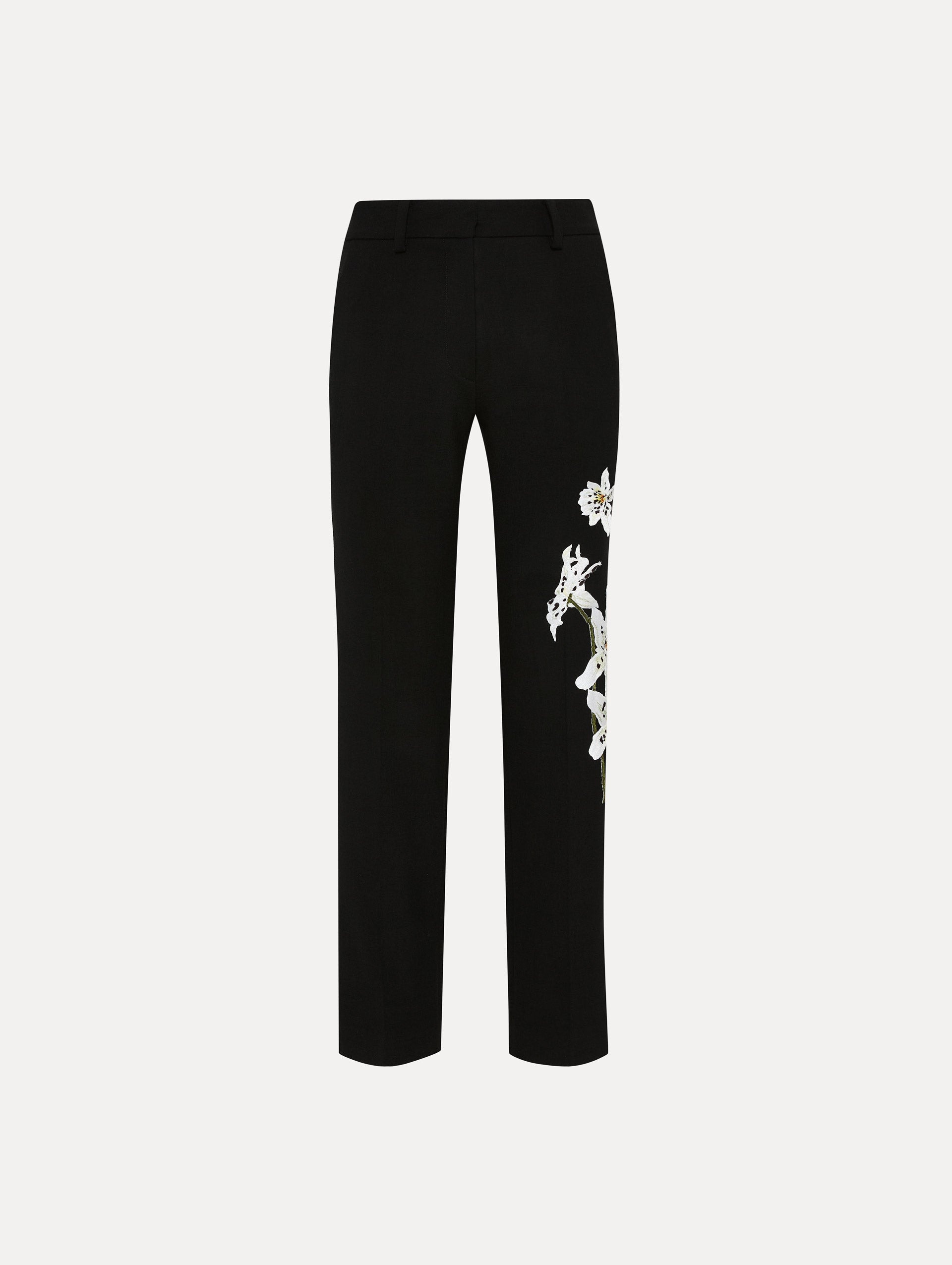 A wearable work of art, these pants are inspired by Co-Creative Director Fernando Garcia’s orchid paintings. Featuring three-dimensional orchids with watercolor detailing and shimmering bugle bead accents, these pants beautifully blend artistry and elegance. Details - High Waisted - Banded Waist - Belt Loops - Zip Fly with Hook-and-Bar Closure - Side Seam Pockets - Straight Leg Silhouette - Style Code: 25RE301DSW_BLK Materials & Care - 94% Virgin Wool, 5% Elastane, 1% Polyamide