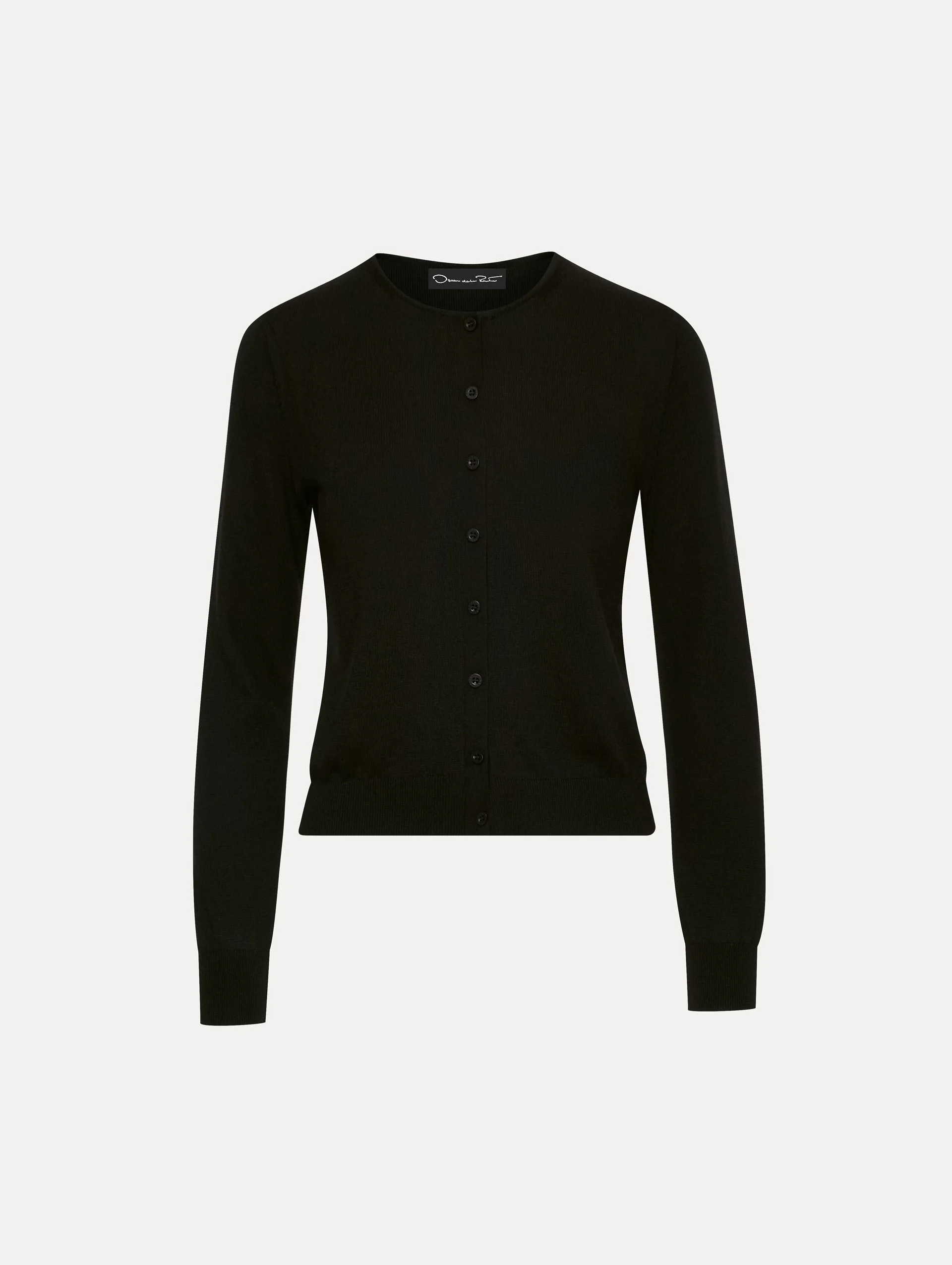 Make this wool-blend cardigan your new go-to layering piece. This long-sleeve style is designed in a timeless shade of black and features a crew neckline for the most flattering fit. Details - Long Sleeves - Crew Neckline - Button Front - Ribbed Trim - Unlined - Style Code: 0N145_BLK Materials & Care - 60% Wool, 30% Silk, 10% Cashmere